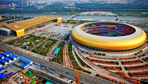 三門峽國際文博城由會展中心、科技中心、體育中心、傳媒中心、文化廣場五大功能建筑群構成。總占地面積37公頃,總建筑面積25萬平方米。會展中心和體育中心兩座建筑以金黃色為主色調,造型優(yōu)雅、大氣磅礴,一呈元寶形,一似金盆狀;傳媒中心建筑高度190米,由三級體塊拔地而起,如雨后春筍般蓬勃向上。幾大建筑動靜結合,交相輝映,充分彰顯了“金盆聚寶、節(jié)節(jié)高升”的設計理念,寓意三門峽市具有豐厚的人才資源、礦產資源和歷史文化資源,同時又象征三門峽經濟社會正處于黃金機遇期和發(fā)展加速器。 文博城各種設備技術先進、功能完備,融會議展覽、科技文化、體育健身、傳媒信息、休閑旅游等多種服務功能于一體,已成為三門峽的新生活動力場、新都市會客廳、新文化集散地、新區(qū)域聚焦點。
