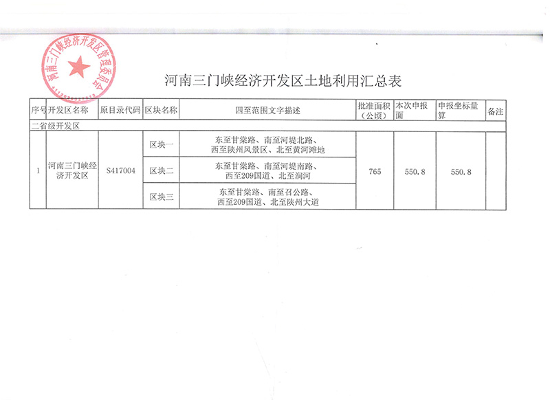 2018年,河南三門峽經(jīng)濟(jì)開發(fā)區(qū)土地變更。當(dāng)年2月26日經(jīng)中華人民共和國(guó)國(guó)家發(fā)展和改革委員會(huì)、中華人民共和國(guó)科學(xué)技術(shù)部、中華人民共和國(guó)國(guó)土資源部、中華人民共和國(guó)住房和城鄉(xiāng)建設(shè)部、中華人民共和國(guó)商務(wù)部、中華人民共和國(guó)海關(guān)總署2018年第4號(hào)公告了《中國(guó)開發(fā)區(qū)審核公告目錄》,其中河南三門峽經(jīng)濟(jì)開發(fā)區(qū)代碼S417004,核準(zhǔn)面積550.83公頃(見附件1),并確定了開發(fā)區(qū)的四至范圍為:東至甘棠路,西至陜州風(fēng)景區(qū),北至黃河灘地,南至召公路(見附件2)。根據(jù)最新四至范圍,陜州風(fēng)景區(qū)不在開發(fā)區(qū)管理范圍之內(nèi),且開發(fā)區(qū)沒有機(jī)構(gòu)設(shè)置審批權(quán)限,故您提案建議開發(fā)區(qū)成立古城管理委員會(huì)沒法辦理。
