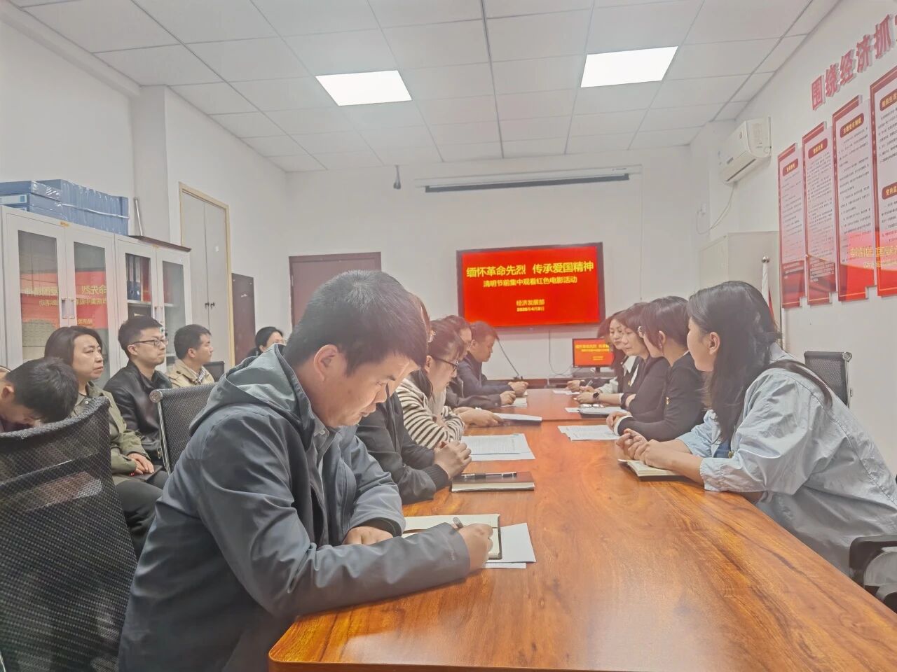在清明節(jié)來臨之際,為緬懷先烈、寄托哀思,4月2日,經(jīng)濟發(fā)展部組織干部職工集中觀看紅色電影《志愿軍:存亡之戰(zhàn)》,引導(dǎo)黨員干部厚植愛國情懷、筑牢思想根基,進一步增強黨組織的凝聚力和戰(zhàn)斗力。